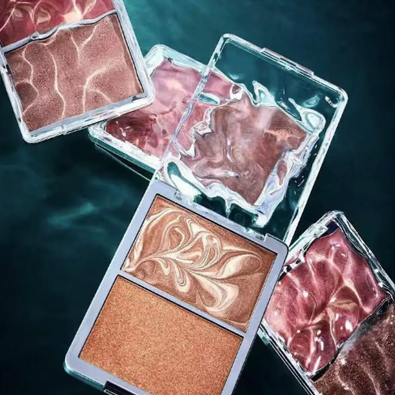 Svilena tekstura, kremna in mokri prah mešanica, lahki pigmenti.